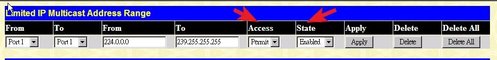 如果區網內除了廣播軟體外,不會再有任何MultiCast的Services ,那我們就把所有的port deny掉那些Multicast的封包,只在電腦教室的Uplink Port端作 Permit(其實我認為沒差,可以直接Deny掉全部)
